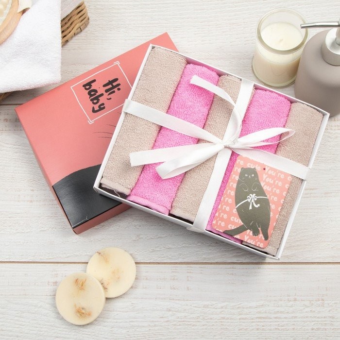 Набор махровых полотенец Этель Hi, baby 30×30 см -5шт, 100% хлопок 340 гр/м2