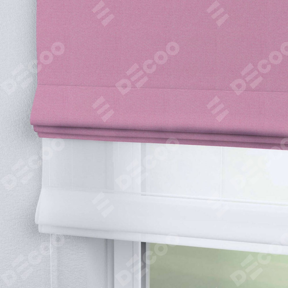 Римская штора день-ночь производителя «Cortin», используется для проёма, пошита из двух полотен, с лицевой стороны лён димаут розовый артикул 16257, вторая ткань тюль (по стандарту комплектуется тюль белого цвета артикул V-01). Имеет универсальный механизм и подходит для монтажа: на потолок, на стену и в нишу.