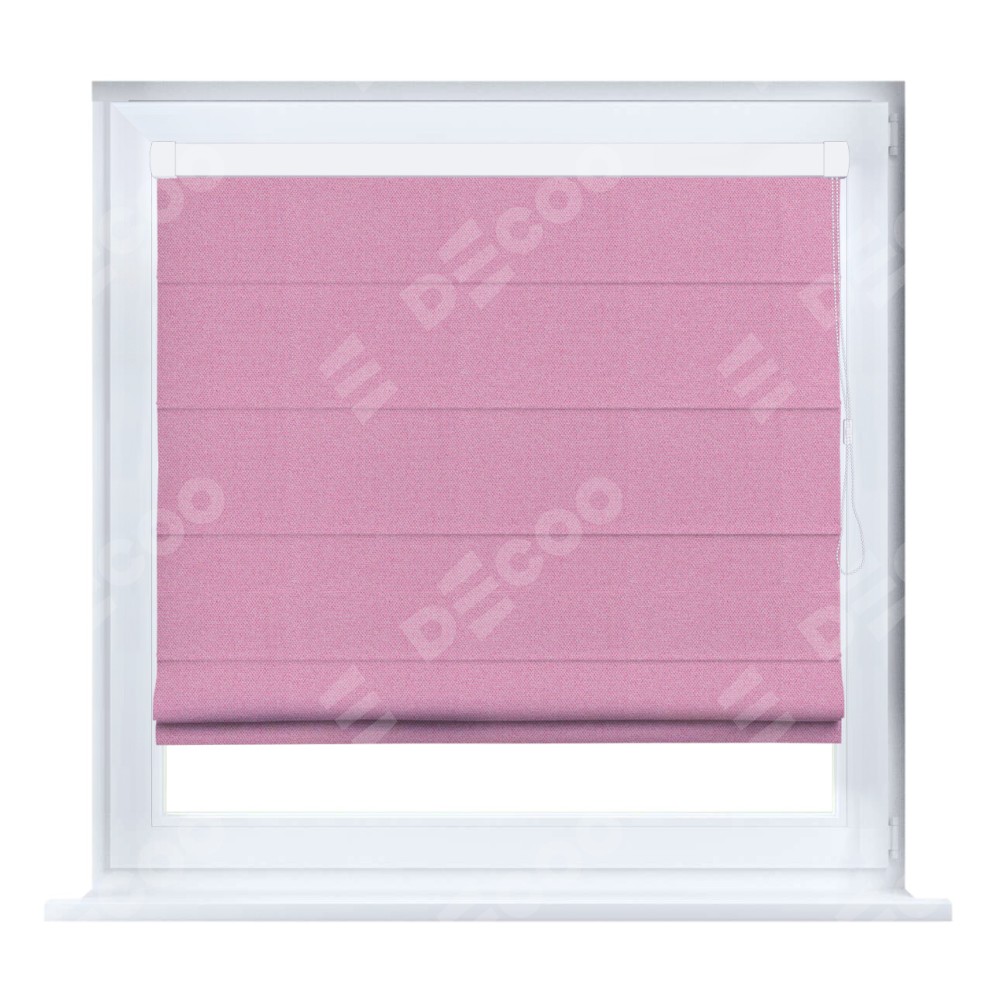 Римская штора кассетного типа, производителя «Cortin», устанавливается только на пластиковые окна и прилегает к стеклопакету, пошита из ткани лён димаут розовый, артикул 16257.