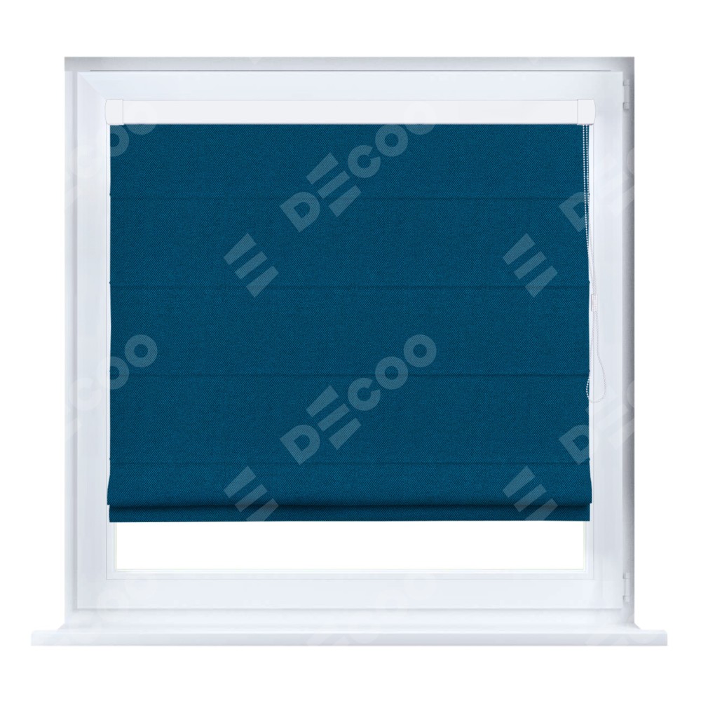Римская штора кассетного типа, производителя «Cortin», устанавливается только на пластиковые окна и прилегает к стеклопакету, пошита из ткани лён димаут синий, артикул 16260.