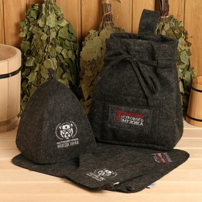 Набор для бани 4 предмета «Набор сурового мужика» шапка, коврик, рукавица, портфель