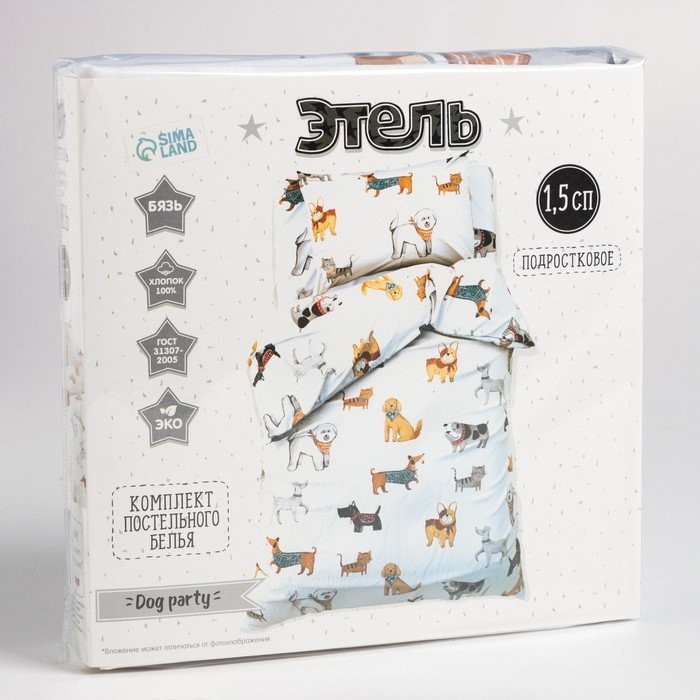 Постельное бельё Этель 1.5 сп Dog party, 143*215 см, 150*214 см, 50*70 см -1 шт,100% хлопок, бязь