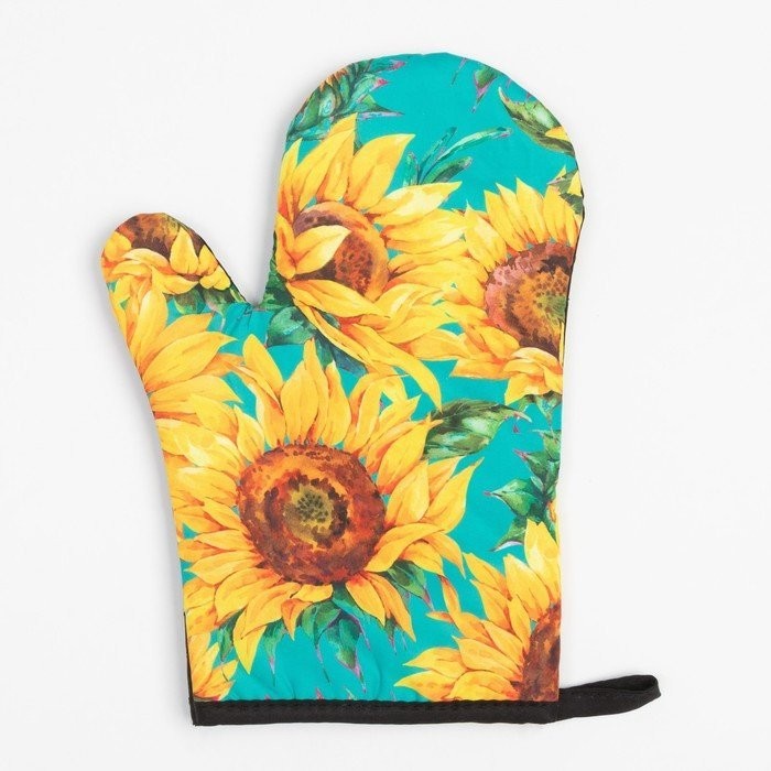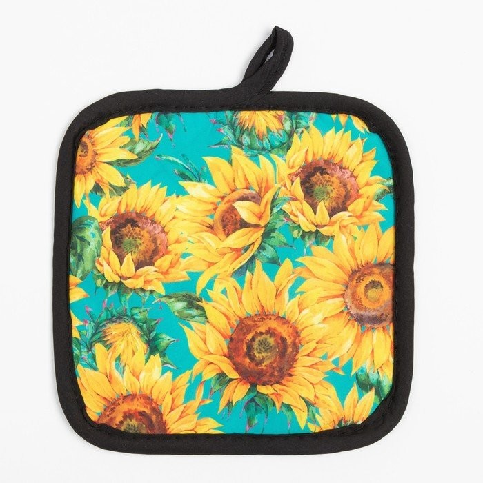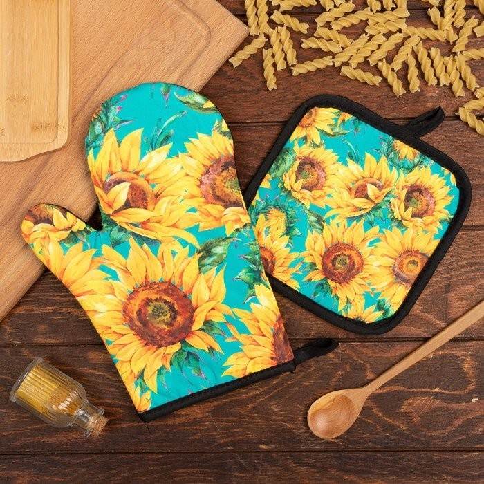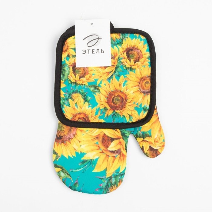 Кухонный набор (2 предмета) Этель «Подсолнухи», прихватка 17×17 см, варежка 26×16 см, 100% п/э