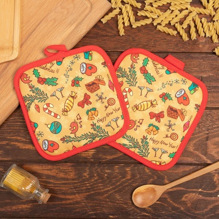 Кух. набор 2 пр. Доляна «Новогодние мотивы» прих. 17*17 см, 100% п/э