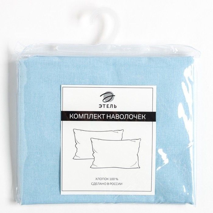 Комплект наволочек «Этель», 50×70 см — 2 шт, голубой, 100% хлопок, ранфорс