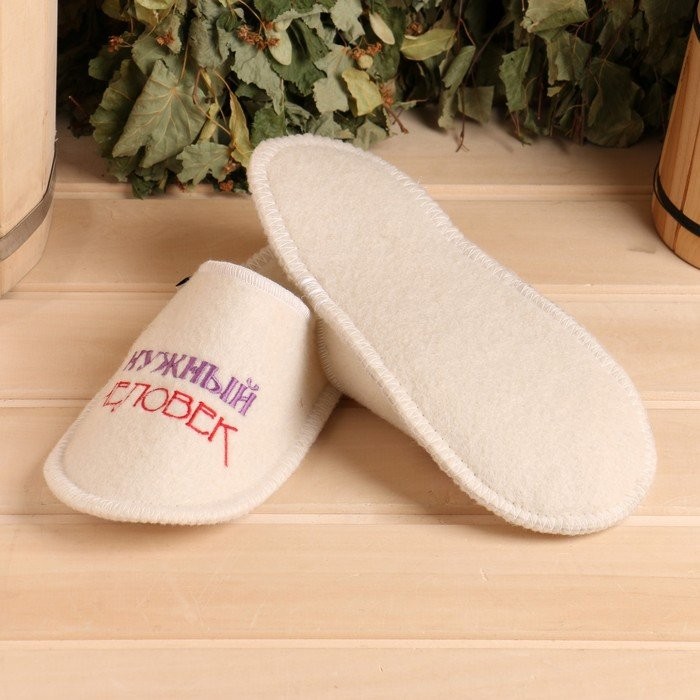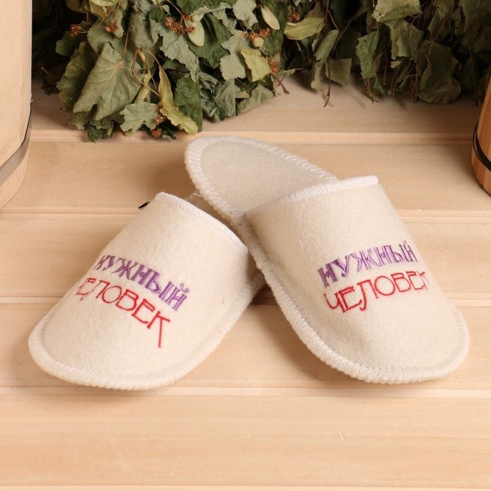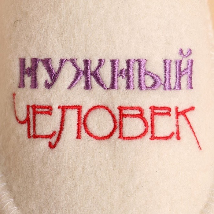 Тапочки для бани белые с вышивкой «Нужный человек» женские (26 см внутр. стелька)
