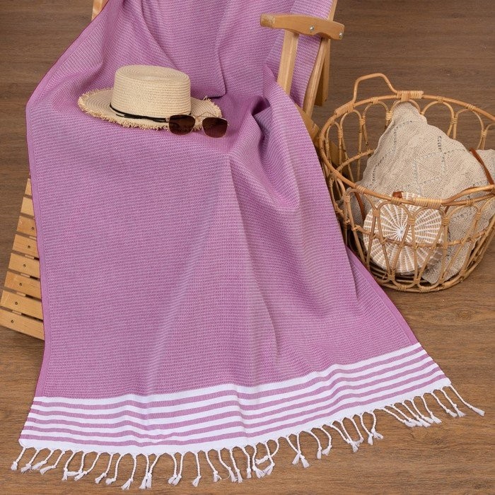 Пештемаль для пляжа, бани, сауны Waffle 100×180 см, розовый