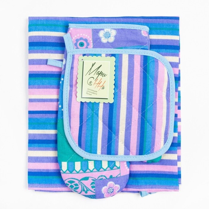 Кухонный набор Мари Санна Сирень+орнамент (прихватка+рукавица+фартук), рогожка