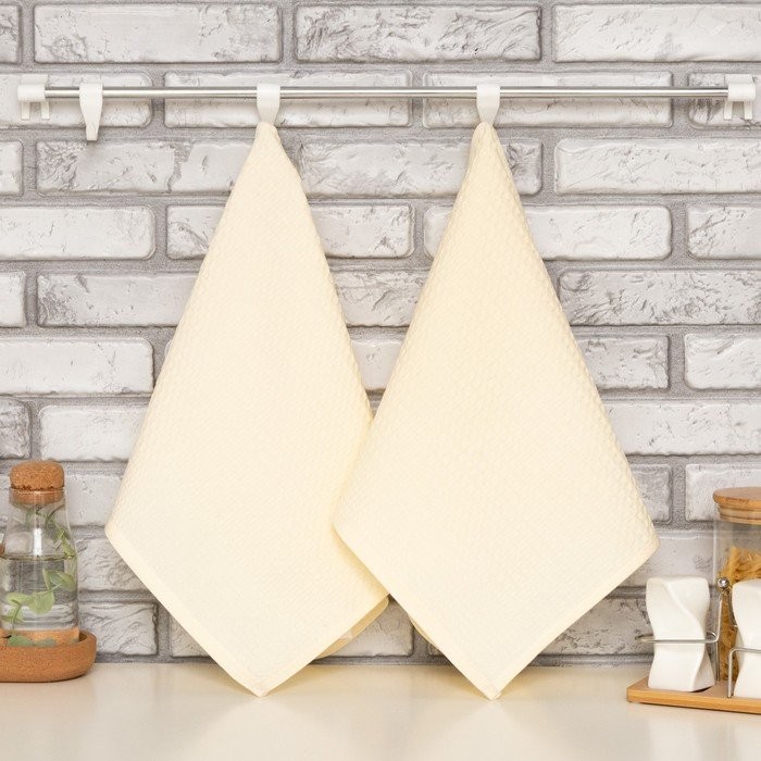 Набор кухонных полотенец Доляна, цвет жёлтый, 35х60см-2шт, 100% хл, крупная вафля, 220 гр/м2