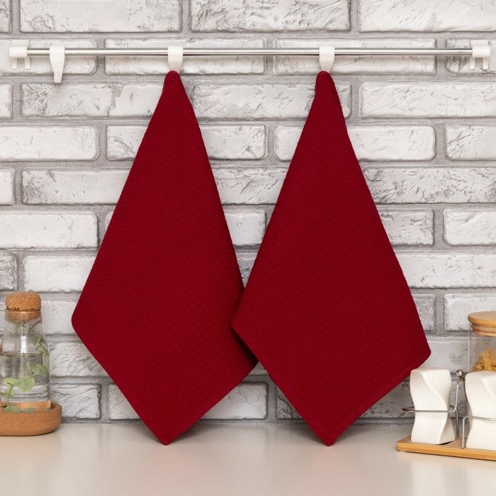 Набор кухонных полотенец Доляна, цвет бордовый, 35х60см-2шт, 100% хл, вафля, 220 гр/м2