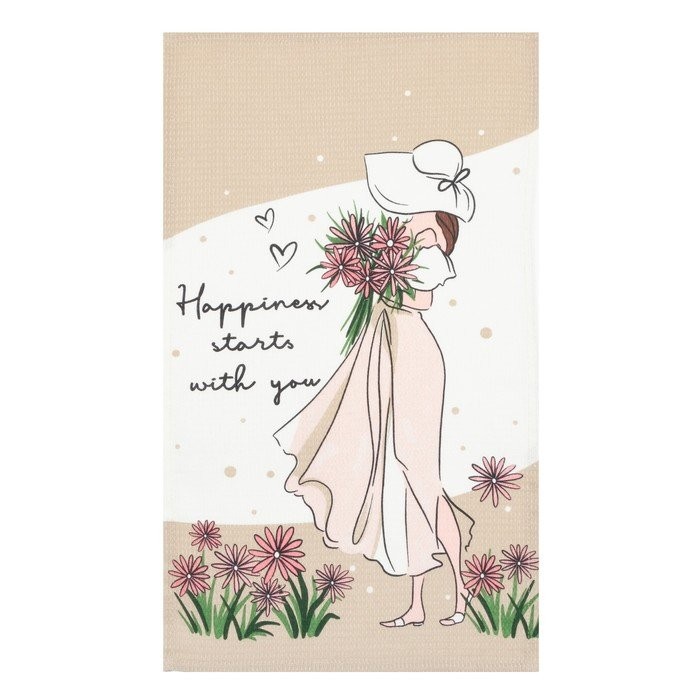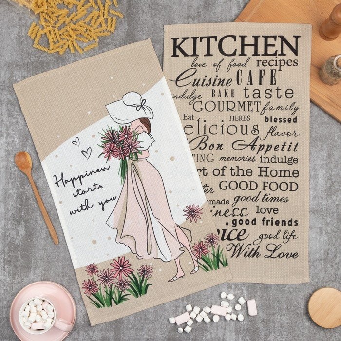 Набор кухонных полотенец Доляна Happiness, 35×60 см -2 шт, 100% хл, вафля 160 г/м2