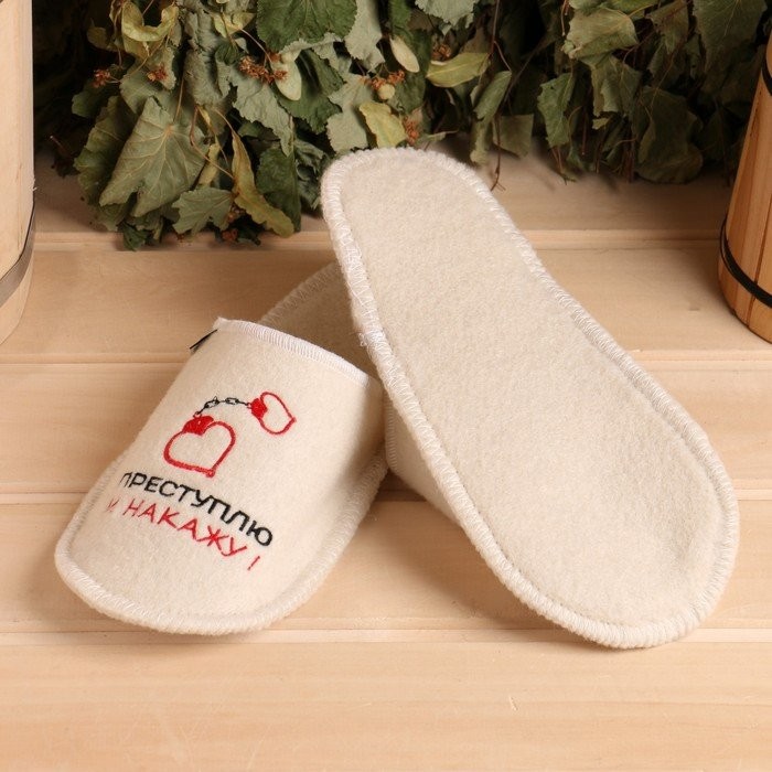 Тапочки для бани белые с вышивкой «Преступлю и накажу» женские (26 см внутр. стелька)