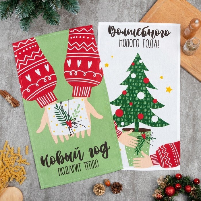 Набор кух.полотенец «Доляна» Тепло Нового года 35×60 см-2шт., 100% хлопок, 160 г/м2