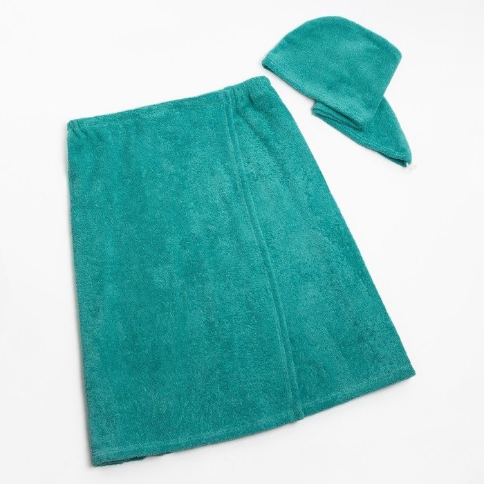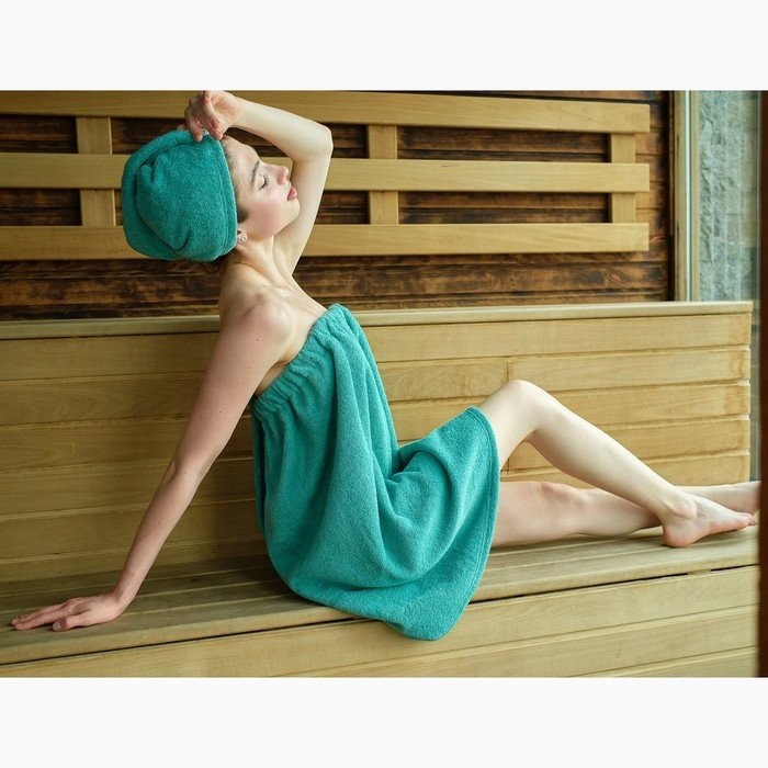 Набор для сауны Экономь и Я: полотенце-парео 68*150см+чалма, цв.голубая трава,100%хл, 320 г/м