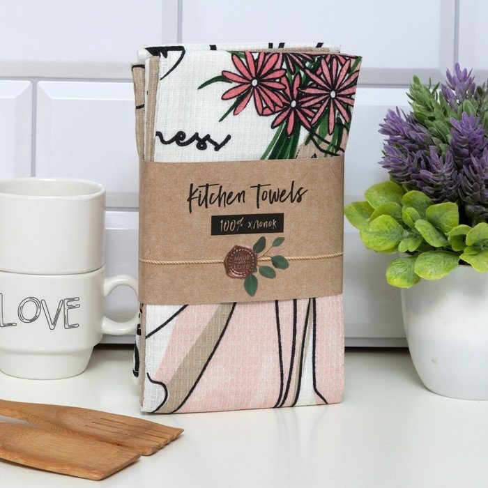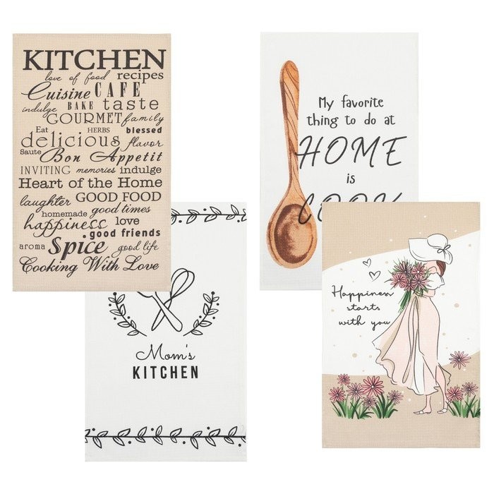 Набор кухонных полотенец Доляна Happiness, 35×60 см -4 шт, 100% хл, вафля 160 г/м2