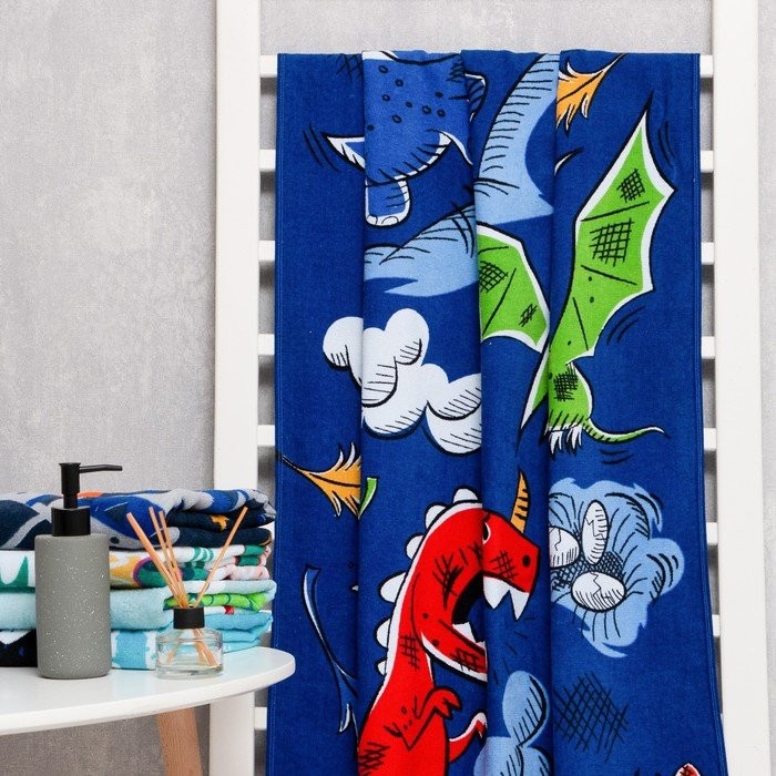 Полотенце Love Life «Динозаврики» 70*140 см, велюр/махра 340гр/м2, 100% хлопок