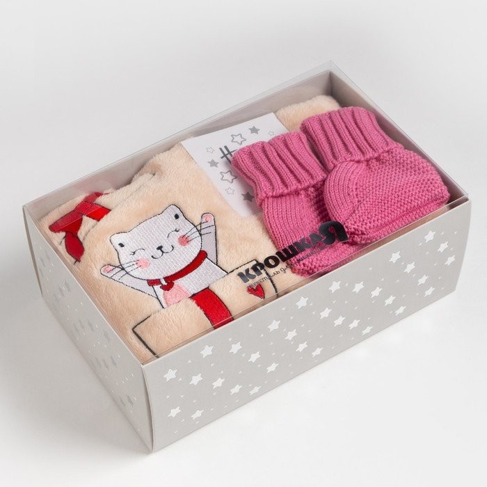 Подарочный набор Крошка Я «Кошечка», плед 90х100см, пинетки 10−12 см