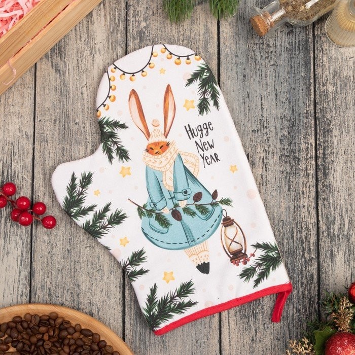 Варежка-прихватка «Hugge New Year» 20×28 см, саржа, 100% х/л, ватин 250 г/м2