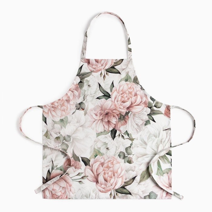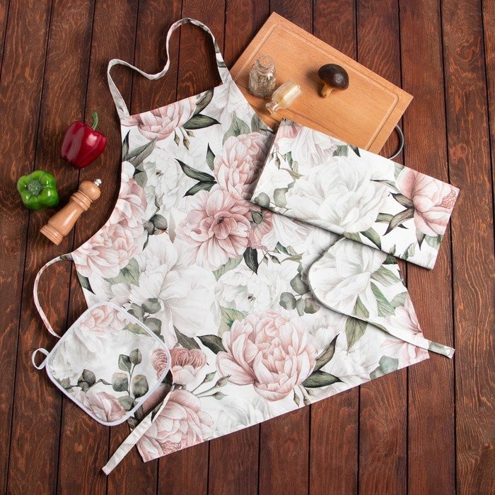 Кухонный набор Этель «Пионы», полотенце 40×73 см, прихватка 19×19 см, фартук 60×65 см