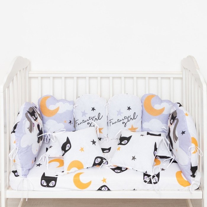 Бортики в кроватку Крошка Я «Fantastic girl» (60х42см- 2шт,30х42см- 4шт,30х30см- 4шт), 100% хлопок