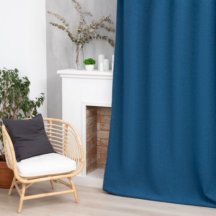 Штора портьерная Этель «Структурная», цвет синий, на шторной ленте, 145×265 см, 100% п/э