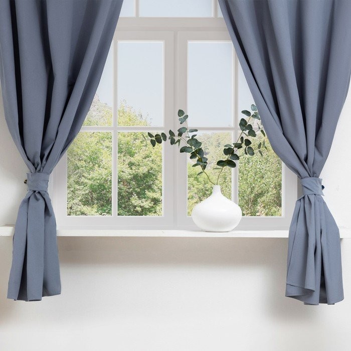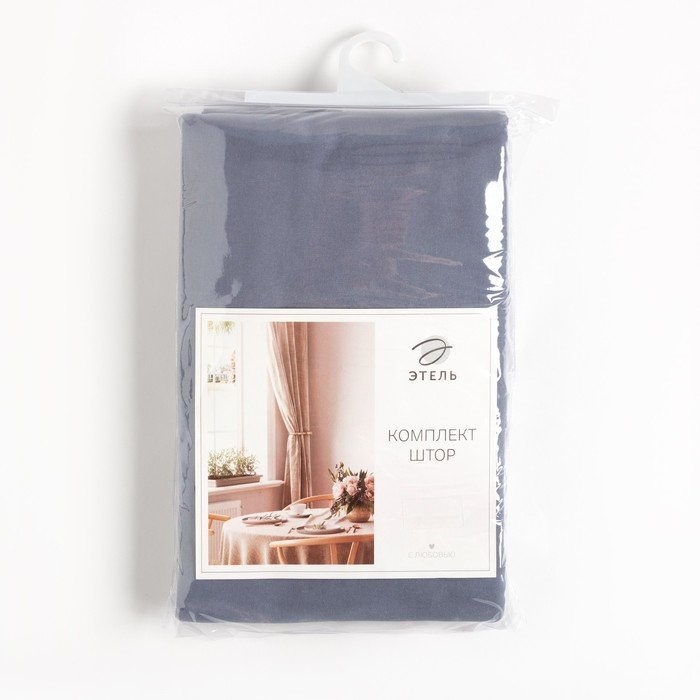 Комплект штор д/кухни с подхватами Этель Kitchen, цв. синий, 150×180 см — 2 шт