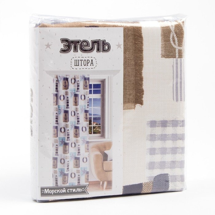 Портьера Этель «Морской стиль» без держателя, цвет синий, 110×260 см, блэкаут, 100% полиэстер