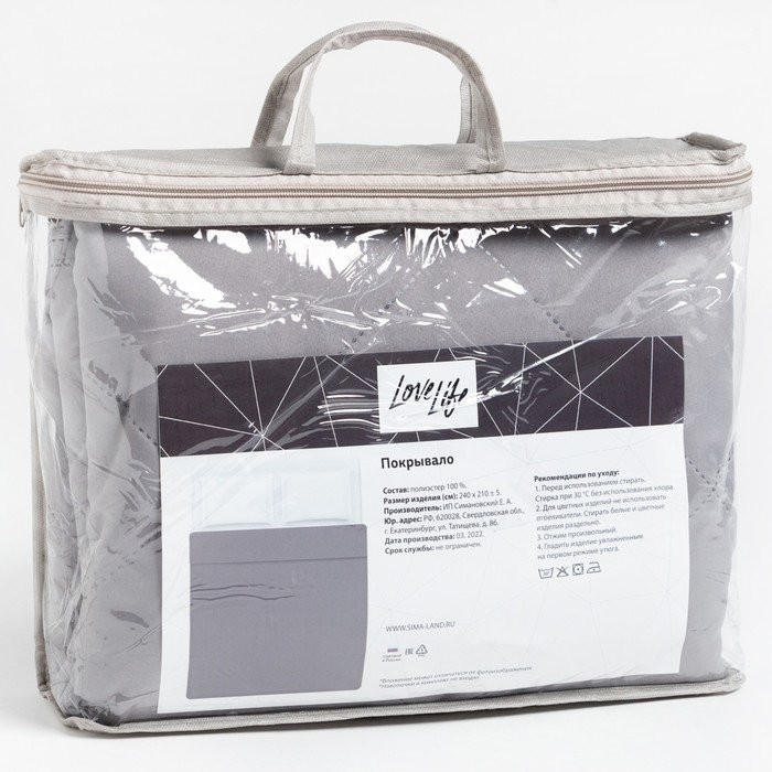 Покрывало LoveLife 1,5 сп 150×210±5 см, цвет серый, микрофайбер, 100% п/э