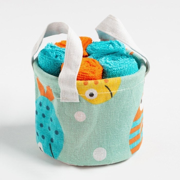 Набор салфеток махровых универсальных в корзинке Этель «Морской» 30*30см-5шт,100% хл,340г/м2