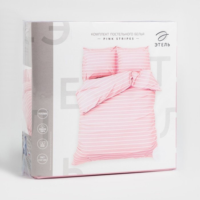 Постельное бельё Этель Дуэт Pink stripes 143х215см-2шт, 220х240см, 70х70см-2шт, 100% хлопок, поплин