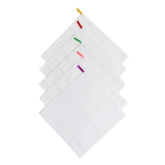 Салфетка для уборки 25×25 — 5 шт, белая вафля 200 гр, хлопок 100%