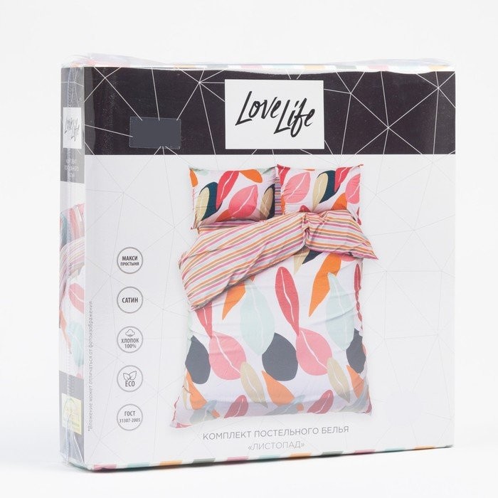 Постельное бельё LoveLife евро «Листопад» 200×217 см, 225×240 см, 50х70см-2шт, 100%хлопок, сатин, 125г/м²