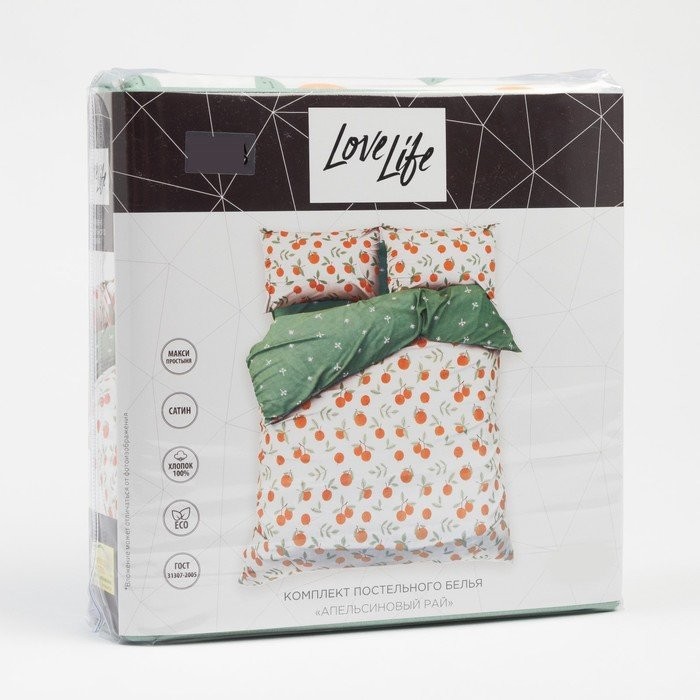Постельное бельё LoveLife 2сп «Апельсиновый рай» 175×215 см, 200×225 см, 50х70см-2шт, 100%хлопок, сатин, 125г/м