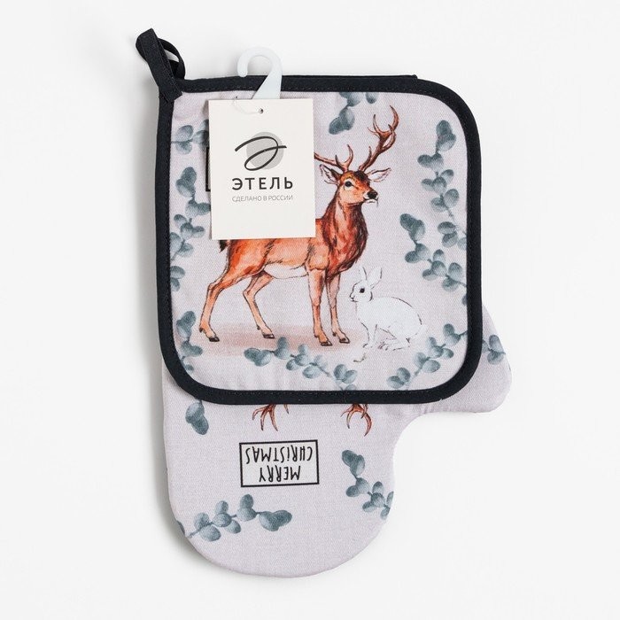 Набор кух. «Merry Christmas» варежка-прихватка 20×28 см, прихватка 19×19 см, 100% хл