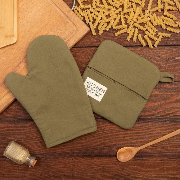 Набор кух. Этель Kitchen, цв. зелёный, варежка-прихватка 18×29 см, прихватка 19×19 см