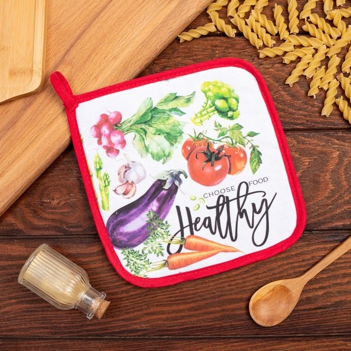 Прихватка «Овощи» 19×19 саржа,100% х/л,ватин 250г/м2