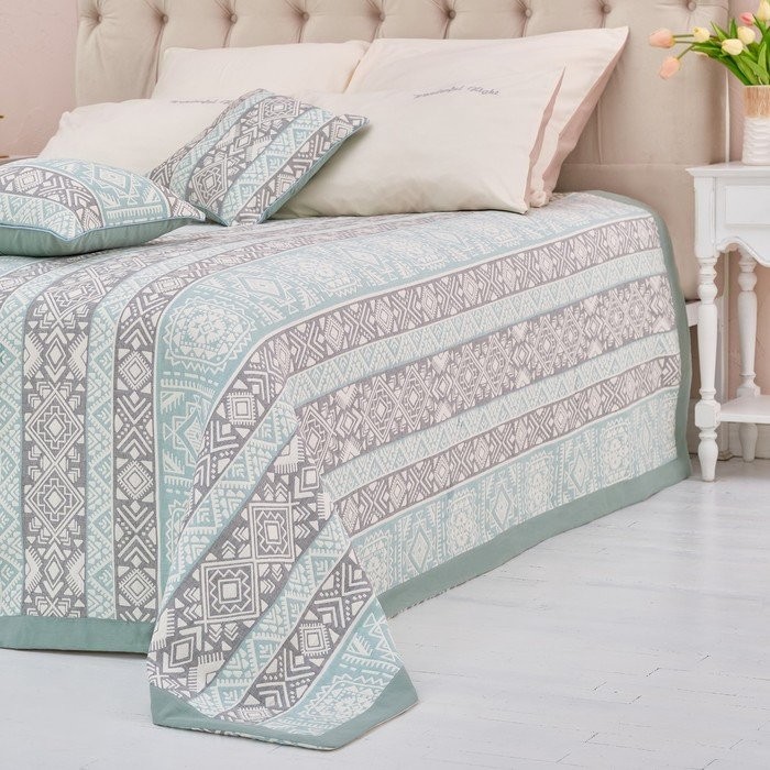Покрывало хлопковое Этель «Инди» 200×240 см, цвет серо-зелёный, 100% хлопок, 300гр/м2