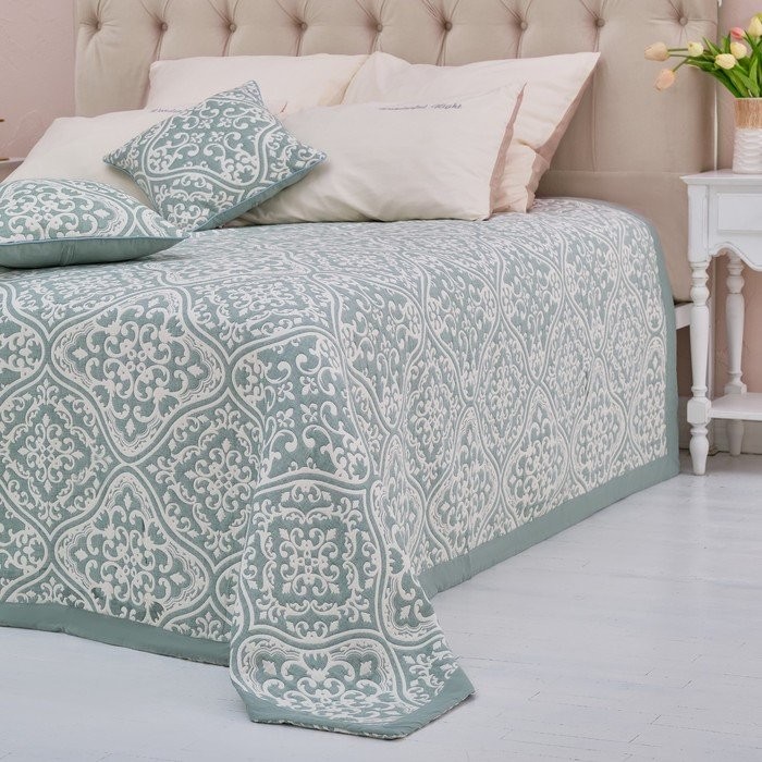 Покрывало хлопковое Этель «Орнамент» 180×240 см, цвет зелёный, 100% хлопок, 300гр/м2