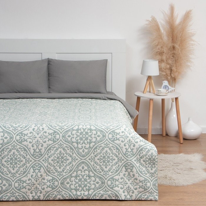 Покрывало хлопковое Этель «Орнамент» 200×240 см, цвет зелёный, 100% хлопок, 300гр/м2
