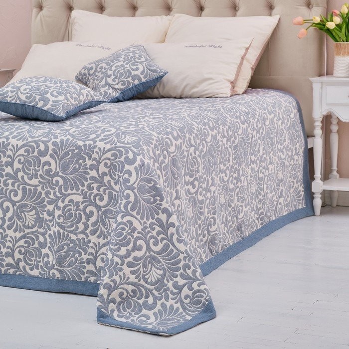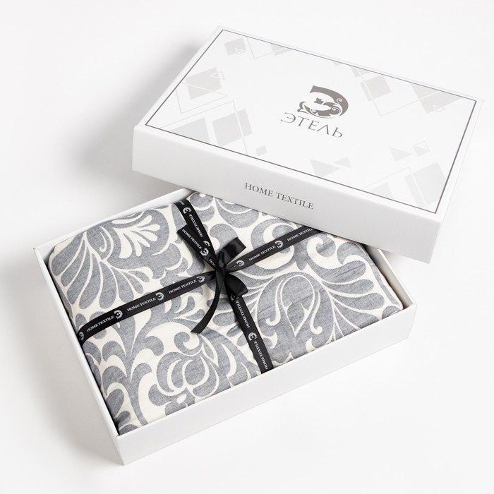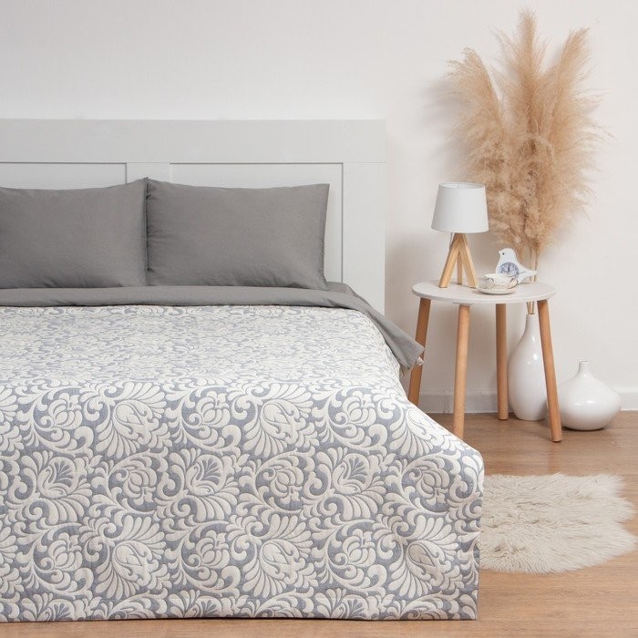 Покрывало хлопковое Этель «Узоры» 150×240 см, цвет серый, 100% хлопок, 300гр/м2