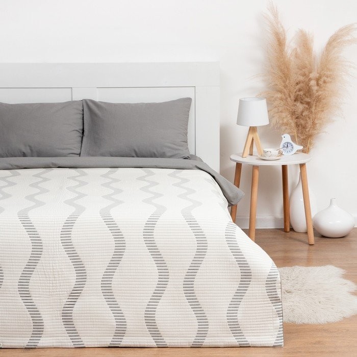 Покрывало хлопковое Этель «Волны» 150×240 см, цвет серый, 100% хлопок, 300гр/м2