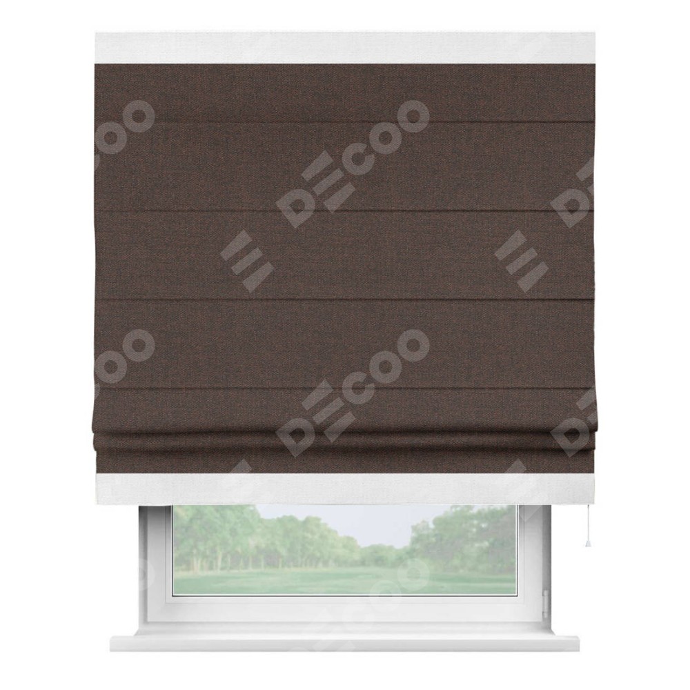 Римская штора производителя «Cortin», используется для проёма, пошита из ткани лён коричневый, артикул 53443. Отделка шторы кантом «Горизонт», ткань для канта используется из льна разной расцветки на выбор. Имеет универсальный механизм и подходит для монтажа: на потолок, на стену и в нишу.