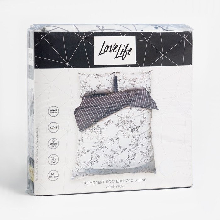 Постельное бельё LoveLife Дуэт «Сакура» 143×215 см-2шт, 225×240 см, 50×70 см-2шт,100%хлопок,сатин,125г/м²