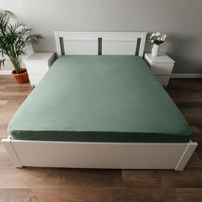 Простыня на резинке трикотажная, размер 120х200х25см, цвет хаки, кулирка 120г/м², 100% хлопок