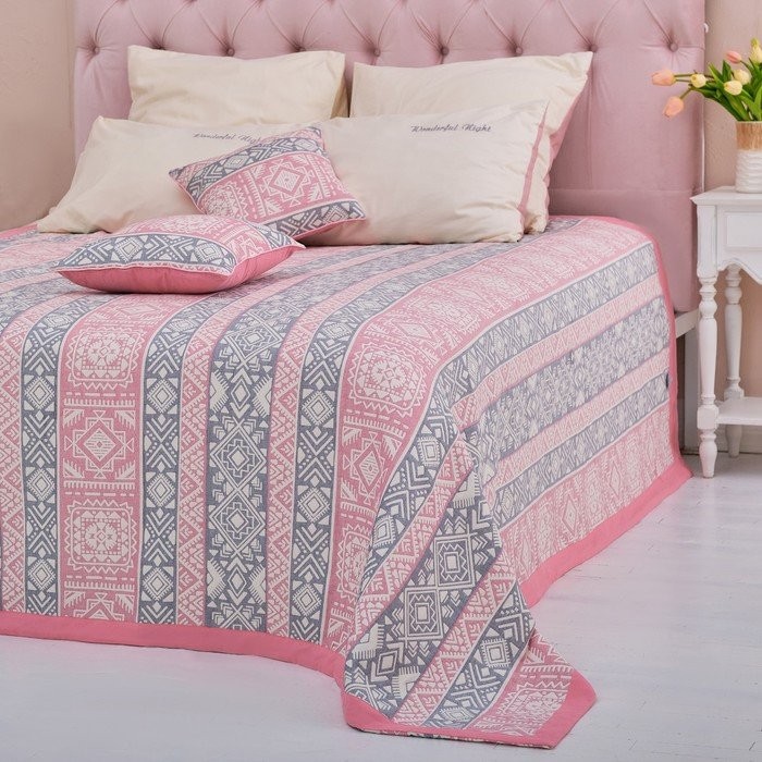 Покрывало хлопковое Этель «Инди» 150×240 см, цвет серо-розовый,100% хлопок, 300гр/м2