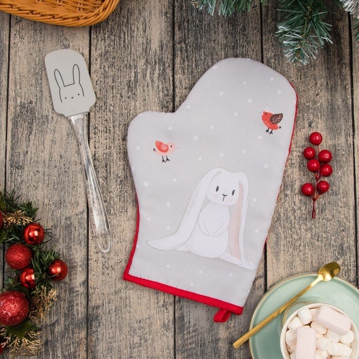 Набор подарочный Доляна Rabbit: варежка-прихватка, лопатка силикон