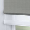 Римская штора день-ночь производителя «Cortin», используется для проёма, пошита из двух полотен, с лицевой стороны лён димаут серый артикул 00001, вторая ткань тюль (по стандарту комплектуется тюль белого цвета артикул V-01). Имеет универсальный механизм и подходит для монтажа: на потолок, на стену и в нишу.
