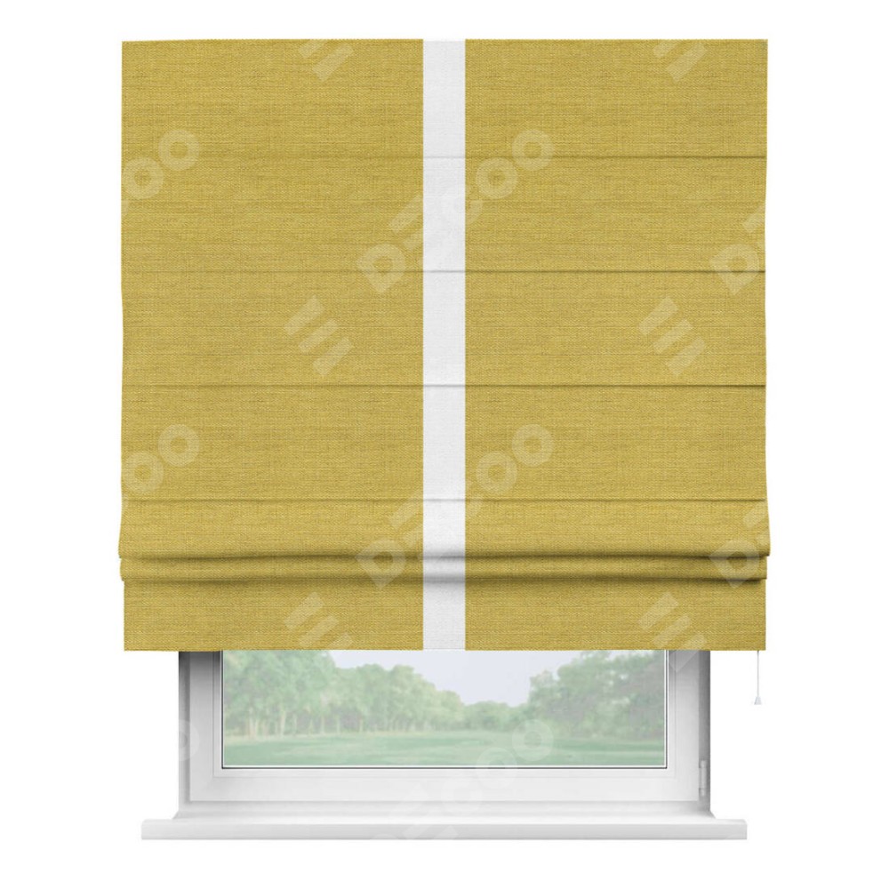 Римская штора производителя «Cortin», используется для проёма, пошита из ткани лён светло-салатовый, артикул 53438. Отделка шторы кантом «Хайвэй», ткань для канта используется из льна разной расцветки на выбор. Имеет универсальный механизм и подходит для монтажа: на потолок, на стену и в нишу.