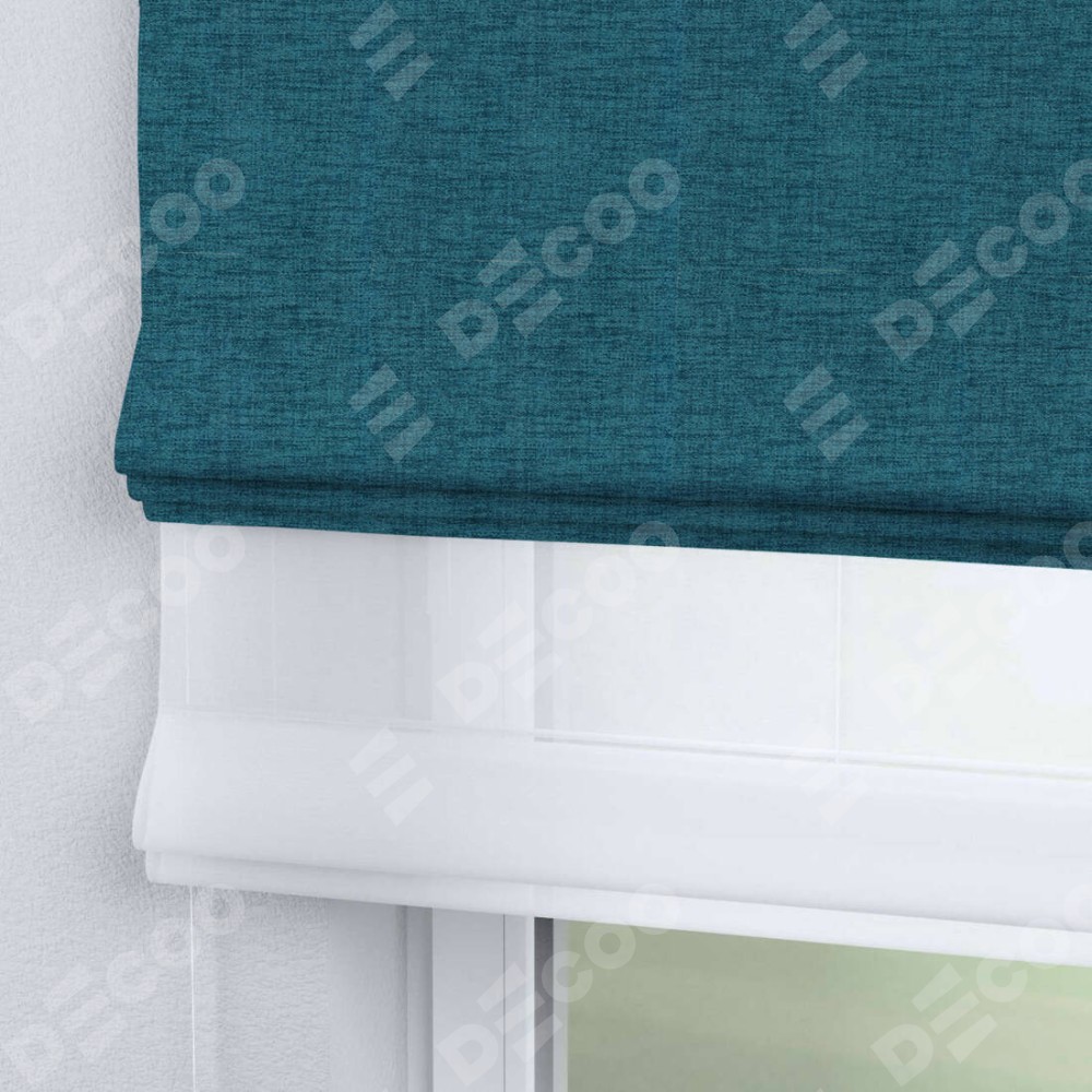 Римская штора день-ночь производителя «Cortin», используется для проёма, пошита из двух полотен, с лицевой стороны рогожка димаут синий артикул 80422, вторая ткань тюль (по стандарту комплектуется тюль белого цвета артикул V-01). Имеет универсальный механизм и подходит для монтажа: на потолок, на стену и в нишу.