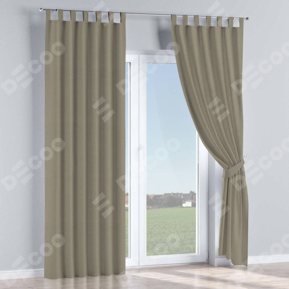 Комплект прямых штор, от производителя «Cortin», пошиты из ткани блэкаут однотонный бежево-серый, артикул ткани 00004. Данная модель пошита на петлях, комплектуется на выбор круглым карнизом и подходит для монтажа на стену или потолок. Прямые шторы на петлях шьются по стандарту с коэффициентом 1/2 (на 100 см. ширины проёма 200 см. ширины ткани), отличительным преимуществом данной модели является простой способ монтажа. Достаточно повесить ее на трубу и штора готова!